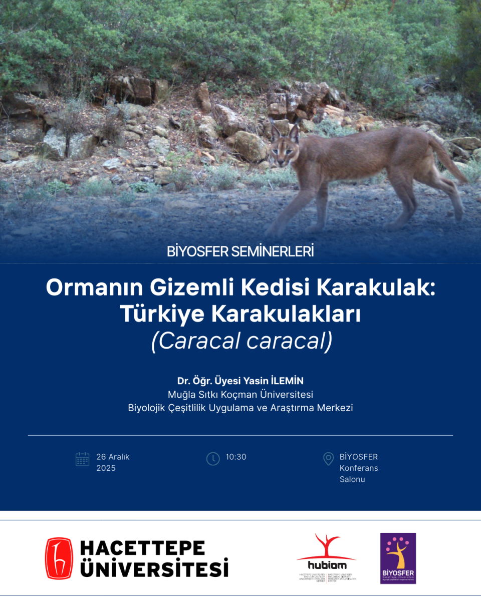 BİYOSFER Seminerleri kapsamında, Dr. Öğr. Üyesi Yasin İLEMİN tarafından “Ormanın Gizemli Kedisi Karakulak: Türkiye Karakulakları (Caracal caracal)” başlıklı seminer gerçekleştirilmiştir.